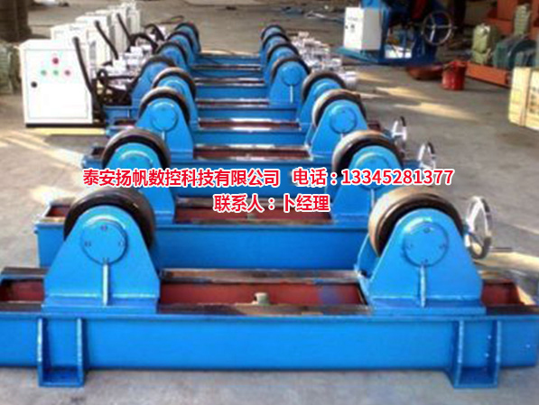 焊接滾輪架,是利用主動(dòng)滾輪與焊件之間的摩擦力帶動(dòng)工件旋轉(zhuǎn)的變位設(shè)備。滾輪架可根據(jù)工件直徑大小自動(dòng)調(diào)節(jié)輪組的擺角,并能自動(dòng)調(diào)心。滾輪架主要用于管道、容器、鍋爐、油罐等圓筒形工件的裝配或焊接,滾輪架當(dāng)與焊接山東操作機(jī)、焊接電源配套時(shí),可以實(shí)現(xiàn)工件的內(nèi)外縱縫和內(nèi)外環(huán)縫焊接。滾輪架充分吸取了國內(nèi)外同類產(chǎn)品的優(yōu)點(diǎn),具有工藝、質(zhì)量可靠、操作簡單、傳動(dòng)噪聲低、工件回轉(zhuǎn)平穩(wěn)等優(yōu)點(diǎn)。滾輪架是實(shí)現(xiàn)壓力容器及筒狀工件焊接自動(dòng)化、半自動(dòng)化的必備設(shè)備。自調(diào)式滾輪架滾輪驅(qū)動(dòng)采用變頻調(diào)速電動(dòng)機(jī),可按焊接規(guī)范進(jìn)行無極調(diào)速,具有焊接速度調(diào)速范圍寬、轉(zhuǎn)動(dòng)平滑性好、低速特性硬等特點(diǎn)。當(dāng)對主、從滾輪架的高度作適當(dāng)?shù)恼{(diào)整后,也可進(jìn)行錐體、分段不等徑回轉(zhuǎn)體的裝配與焊接。對于一些非圓長形焊件,若將其卡在特制的環(huán)形卡箍內(nèi),也可在焊接滾輪架上進(jìn)行裝焊作業(yè)。特別是自調(diào)式、可調(diào)式焊接滾輪架系列